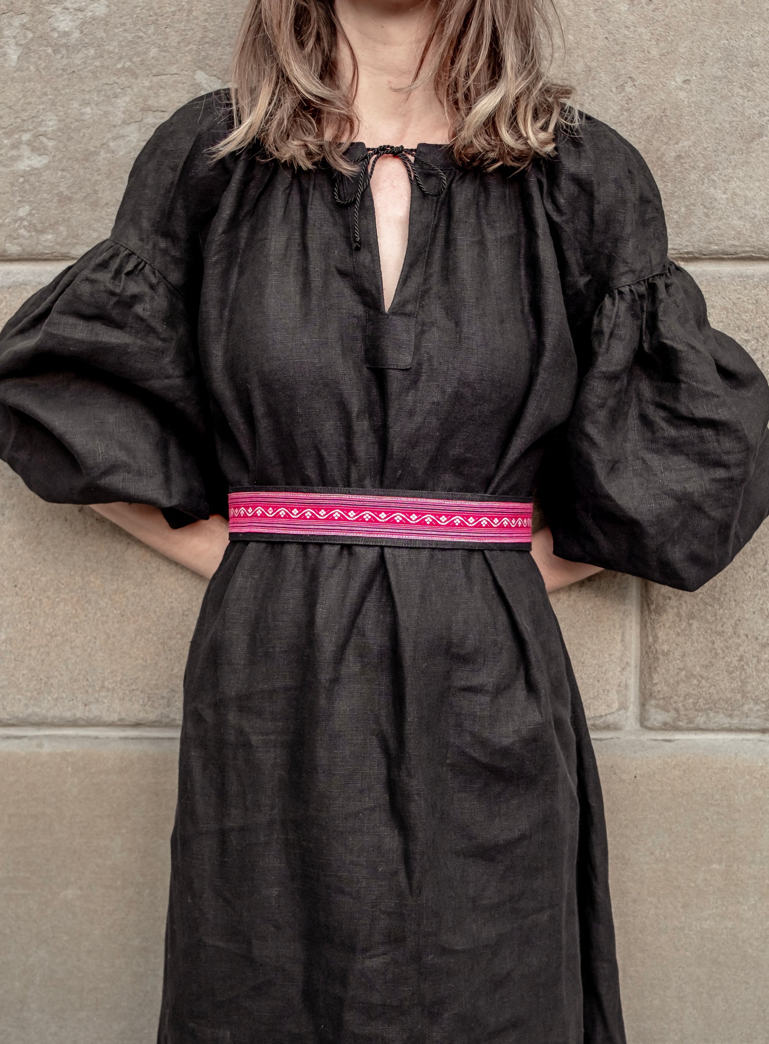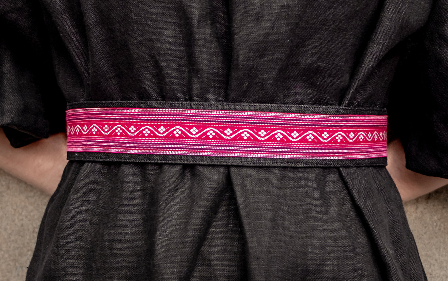 So this is special - the vintage trims were collected from all over the world and sewn on the fabric of the matching dress. This means you wear a one of a kind belt, which only exists one or two times in the whole world ( made by Vietopia).