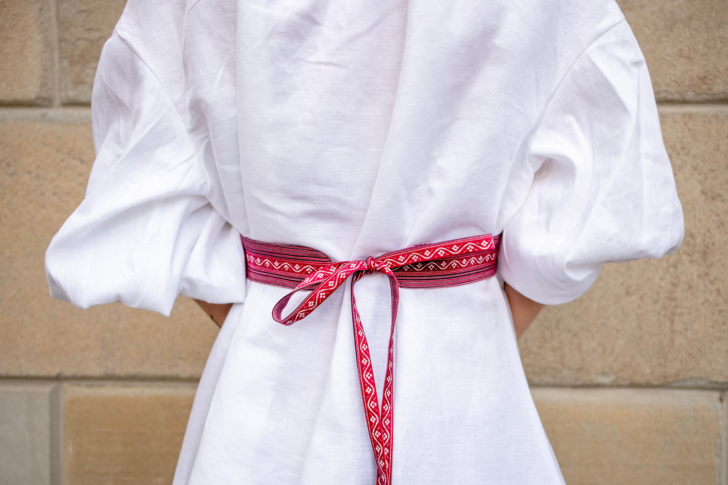 So this is special - the vintage trims were collected from all over the world and sewn on the fabric of the matching dress. This means you wear a one of a kind belt, which only exists one or two times in the whole world ( made by Vietopia).