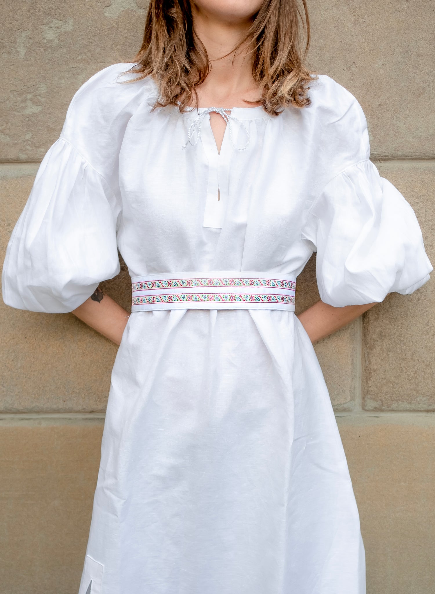 So this is special - the vintage trims were collected from all over the world and sewn on the fabric of the matching dress. This means you wear a one of a kind belt, which only exists one or two times in the whole world ( made by Vietopia).1