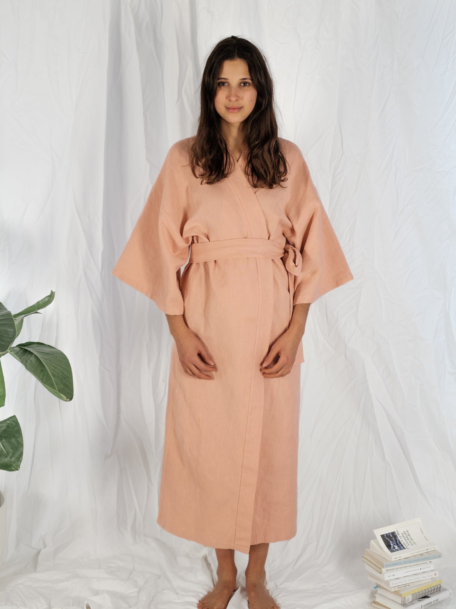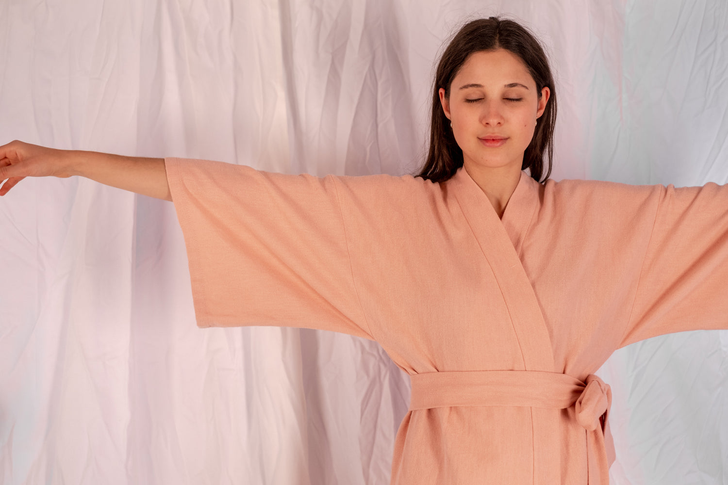 The moment you get up in the morning or the moment you come hope from work you can put the kimono on. A companion for reading, listening to music, drinking coffee or tee, cuddling up.