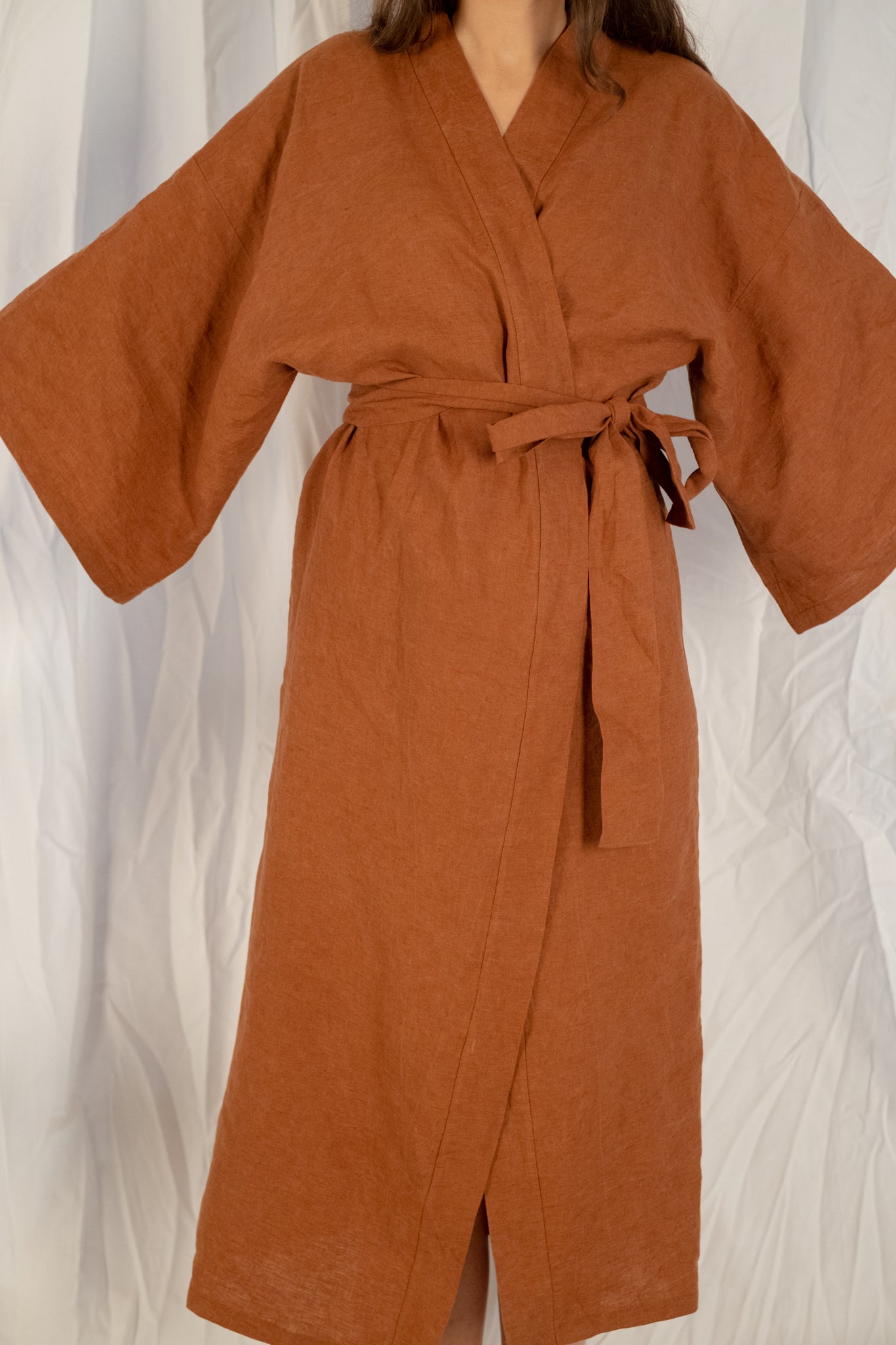 The Kimono is made of 100% natural and sustainable organic linen. For optimal care, I recommend cold hand wash or cold gentle machine wash. Do not use bleach or harsh chemicals and hang to air dry.