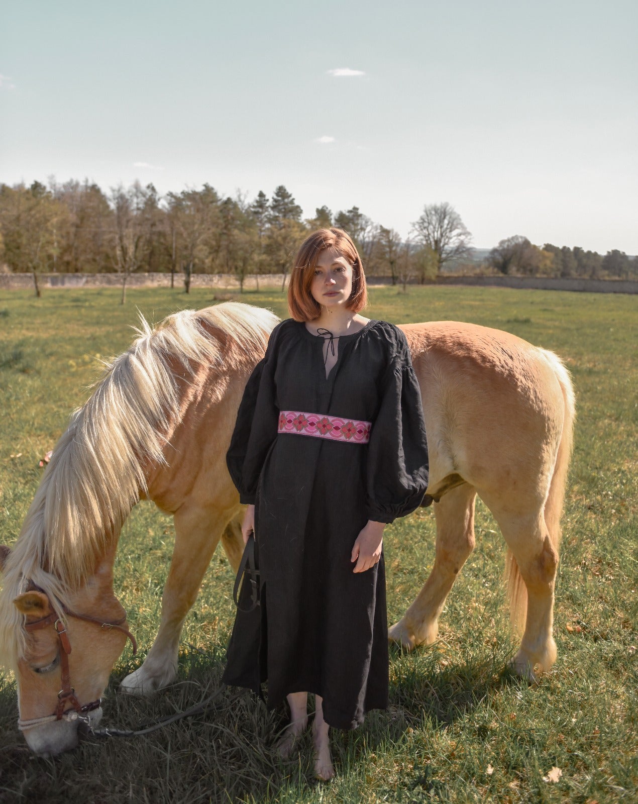 The dresses have a loose fit and will be given a beautiful feminine shape, when worn with either a belt from the collection or a belt you already preowned.